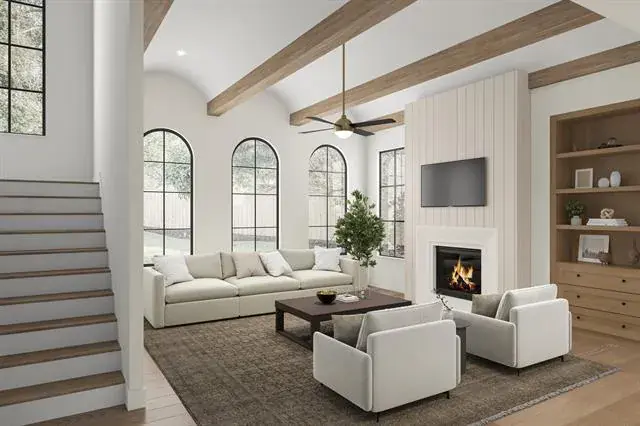MLS# 21168174 – Built by Homebound – May 2026 completion! ~ The Sienna blends elegance and versatility in a thoughtfully designed two-story home. The first floor features an open-concept kitchen with dual pantries, casual dining, and a great room accented by decorative ceiling beams that opens to a covered patio for effortless indoor-outdoor entertaining. Tucked conveniently near the primary suite, laundry room, powder bath, and two-car garage, the back-of-house layout is designed for everyday ease. The luxurious primary retreat includes a spa-inspired bath and a generous walk-in closet. A flexible front room offers the ideal space for a home office or lounge, while a secondary bedroom with a full bath and walk-in closet provides comfort for guests. Upstairs, a spacious loft and dedicated media room create multiple gathering spaces, complemented by two additional bedrooms with walk-in closets. Bedroom 4 features its own private bath, while a second full bath is conveniently located in the hallway, serving the remaining upstairs living spaces. A private balcony off the loft extends living outdoors, offering a peaceful place to unwind. With its thoughtful layout, premium finishes, and seamless connection to the outdoors, The Sienna sets the standard for refined lakeside living.