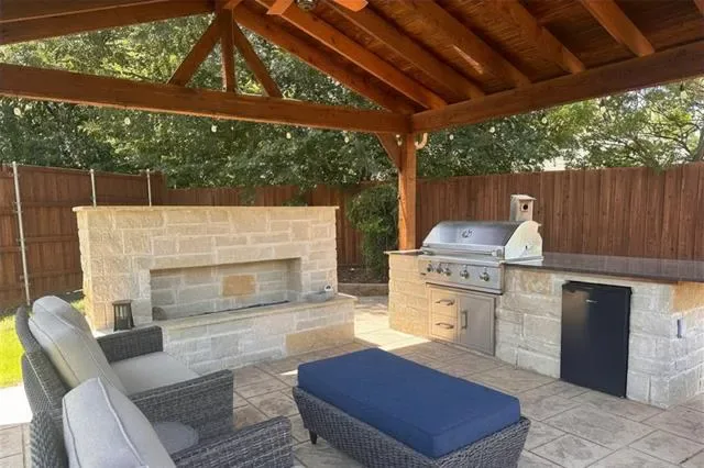 Attached Grill, Covered Patio/Porch, Gas Grill, Rain Gutters, Outdoor Kitchen, Outdoor Living Center