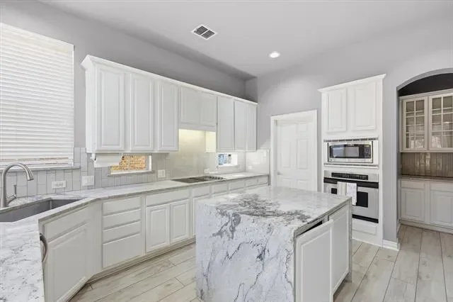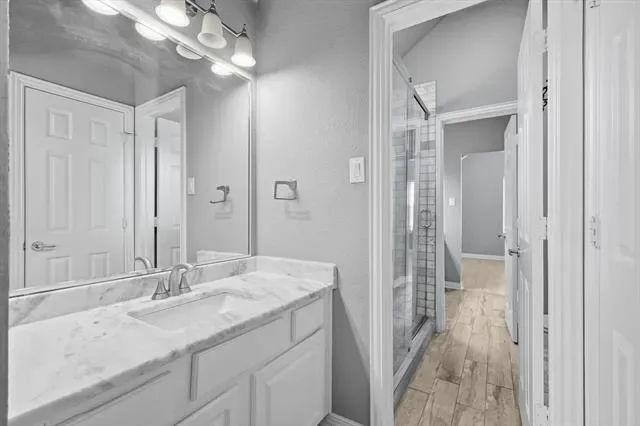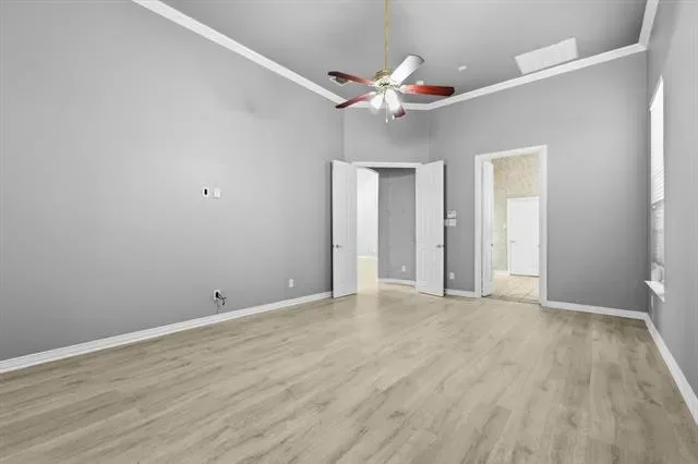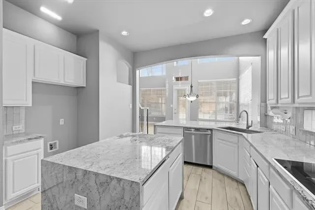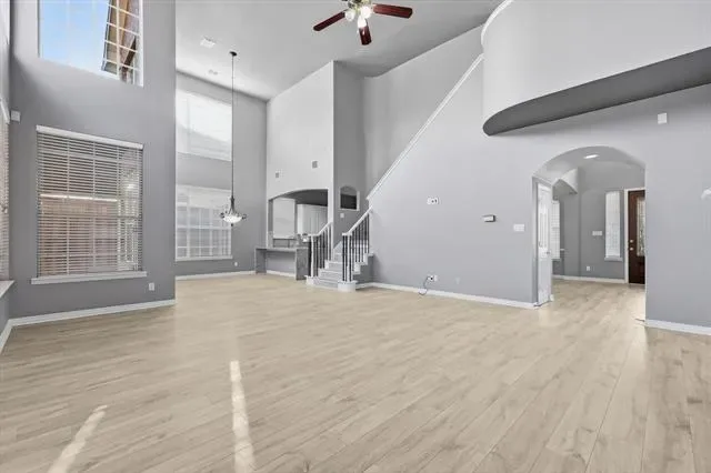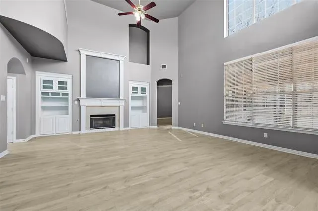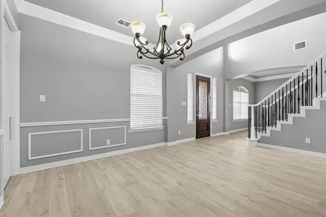 A Stunning Spacious Home in Wellington, this beautiful home in the highly desirable Wellington community blends with modern thoughtful updates, offering everything your family needs for comfort, space, and lifestyle. As you enter the house, everyone greeted by rich elegant flooring and a classic staircase that welcome you to this beautiful home. This home offers 4 bedrooms, 3.5 bathrooms, and 3 separate living spaces including a formal living room, family room, game room plus a dedicated office for today’s work-from-home needs. The primary suite is located downstairs and serves as a relaxing retreat with a walk-in shower, dual vanity, recently updated custom walk-in closet, generous storage to keep life organized. A bar area for your entertainment need located between formal dining and kitchen with built in cabinet and a swing door. The kitchen is the heart of the home with a downdraft electric cooktop, center island, breakfast bar, and ample cabinetry, making it both functional and inviting. The open living room features soaring ceilings, creating a bright and airy space ideal for everyday living and entertaining. Large windows bring in abundant natural lights. Feature owner will be able to add a media if wish to, there is a plenty of attic space available next to game room. A private backyard with about 492 sqft covered patio perfect for outdoor gatherings or relaxing evenings and this back has enough space to build a pool. This beautifully maintained two-story home offers a thoughtful layout, stylish updates which include bathrooms, kitchen and closets and plenty of space for your storage need. Two-car garage, great curb appeal, and a welcoming neighborhood, and this home truly checks all the boxes. Ideally located near parks, community pool, shopping, dining, and top-rated schools, this Flower Mound home is a rare find—don’t miss your opportunity to make it yours!