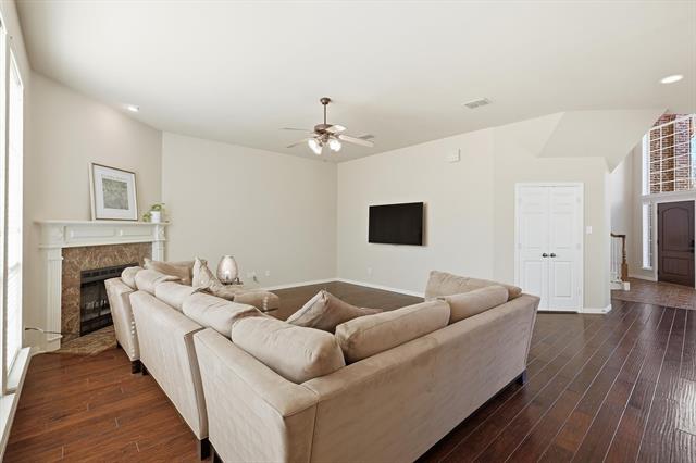 Welcome to this beautifully maintained two-story home in the highly sought-after Wellington community of Flower Mound, Texas, one of the most desirable neighborhoods in the Dallas–Fort Worth area. Known for its award-winning schools, scenic parks, and premier amenities, Wellington offers an exceptional lifestyle in the heart of Flower Mound. This spacious residence features 5 bedrooms, 3 full bathrooms, formal living and dining areas, a large upstairs game room, and a two-car garage, offering the perfect blend of comfort, functionality, and space for entertaining. Step inside to discover rich hardwood flooring throughout the main living areas, designer paint tones, and abundant natural light. The inviting family room features a cozy fireplace and a wall of windows, creating a warm and welcoming gathering space.The island kitchen is ideal for everyday living and entertaining, offering extensive cabinetry, generous counter space, an electric cooktop, and a spacious breakfast area for casual dining. A first-floor guest bedroom and full bathroom provide flexibility for visitors or multi-generational living.The private primary suite offers a relaxing retreat, complete with a luxurious ensuite bathroom featuring dual vanities, a garden soaking tub, separate shower, and a spacious walk-in closet. Upstairs you''ll find three additional bedrooms, a full bath, and a large game room, perfect for movie nights, play space, or a media area.