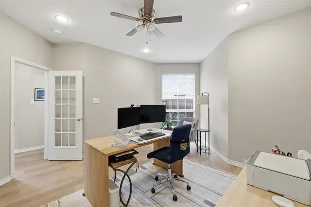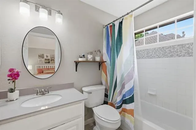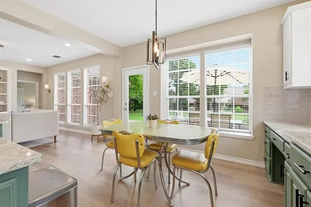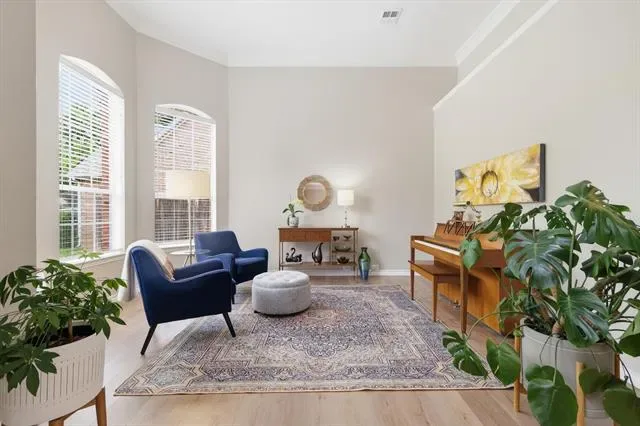 MULTIPLE OFFERS RECEIVED. OFFER DEADLINE end of day Monday, April 20!! Located in the highly sought-after Wellington neighborhood of Flower Mound, this beautifully maintained and updated home sits on a corner lot with pristine landscaping and timeless curb appeal. A grand two-story entryway welcomes you inside, where you’ll find an ideal layout featuring three spacious living areas and two dining spaces. The main level offers a private second bedroom and closet that is currently being used as an office with French doors, it is an ideal option for either bedroom or office with with easy access to a full bathroom for added flexibility. The living room is anchored by a decorative marble gas fireplace, creating a cozy yet elegant focal point, while the back of the home is lined with windows that flood the space with natural light and a view of your spacious backyard. The kitchen is thoughtfully designed with granite countertops, a center island, pantry, built-in desk area, and a window over the sink. A butler’s pantry adds extra storage and convenience for hosting. The primary suite is a true retreat, featuring a generous sitting area, a beautifully appointed bathroom with dual sinks, and a large custom designed closet. Upstairs, you’ll find three additional bedrooms, two full bathrooms, and an expansive game room filled with natural light from oversized windows—perfect for relaxing or entertaining. Step outside to a large backyard complete with a patio and iron and wood fencing—ideal for outdoor living, play, or entertaining. This home offers the perfect blend of space, comfort, and versatility in one of Flower Mound’s most desirable communities. Community pool and parks! Blocks from Wellington Elementary. Easy access to FM3040, FM2499 and FM1171. Close to dining and shopping. 20 minutes from DFW airport.