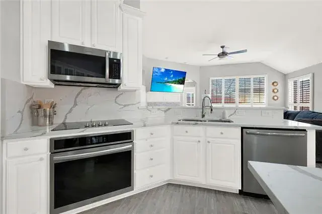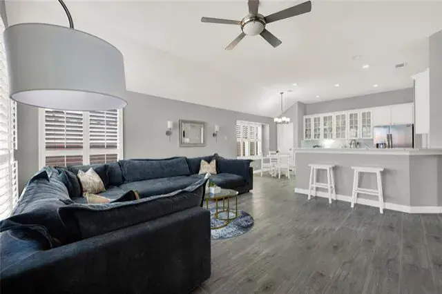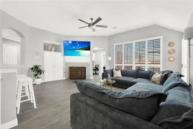 Over $120,000 in upgrades! Welcome home to 3525 Sutters Way, located in the highly sought-after Wellington community, known for its amenities, award-winning schools, and everyday convenience. This beautifully updated single-story home offers an open, welcoming layout with three bedrooms, a private office nook, and fully remodeled kitchen and bathrooms. Inside, you’ll find high ceilings, arched windows, custom built-ins, and a cozy marble-accent fireplace, all complemented by new wood-look tile flooring (2025), fresh neutral interior paint (2025), plantation shutters (2023), and updated lighting and fixtures. The kitchen is perfect for gathering, featuring stainless steel appliances, painted cabinetry, quartz countertops with elegant veining (2025), and updated sink and fixtures (2025). The kitchen features an electric cooktop and is plumbed for gas, offering future buyers the option to convert to a gas cooktop if desired. The primary suite feels like a retreat with a fully remodeled marble shower, quartz countertops, and a quartz-accented garden tub. Outside is where this home truly shines, with evenings enjoyed on the extended patio overlooking the upgraded pool and spa, featuring a new heated spa-pool (2024), pool and spa lighting replaced with LED upgrades (2024), and new pool tile and coping (2025). Recent improvements also include new roof (2023), fresh exterior paint (2023), new electrical panel (November 2023), new front door (2024), refreshed landscaping, privacy fencing, and thoughtfully designed exterior lighting. A move-in-ready home designed for comfort, entertaining, and everyday enjoyment.