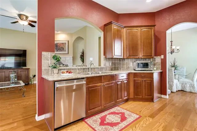 Welcome home to European-style 3700 Dresage Lane, located in the heart of the sought-after Wellington community, valued for its amenities, everyday convenience, and excellent Flower Mound schools. This beautifully updated single-story, split-bedroom home is designed for comfortable living and easy connection. The beautiful front elevation features multiple arched windows, filling the home with natural light and adding inviting curb appeal.