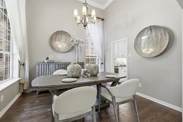 Welcome to this beautifully updated 5-bedroom home in the highly sought-after Wellington community in Flower Mound, just steps from the amenity center and all three top-rated LISD schools. Inside, hand-scraped hardwood floors guide you through a dedicated home office and elegant, formal dining space into a light-filled, open-concept living area. The updated kitchen flows seamlessly into the inviting living room, creating the perfect setting for both everyday living and effortless entertaining. The first-floor primary suite offers a tranquil, private retreat with custom built-ins, a spa-like ensuite bath, and a calming ambiance and serene views designed for true relaxation.