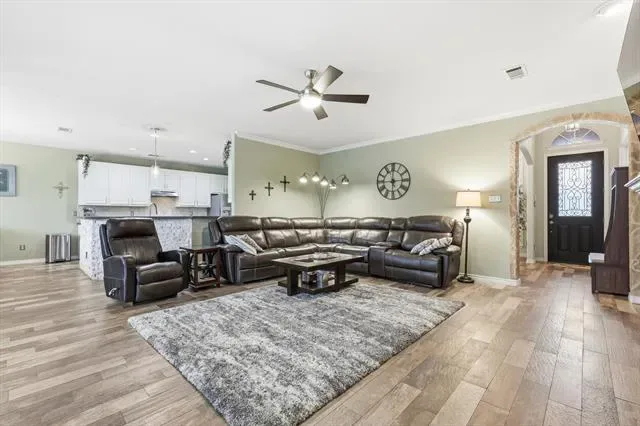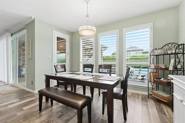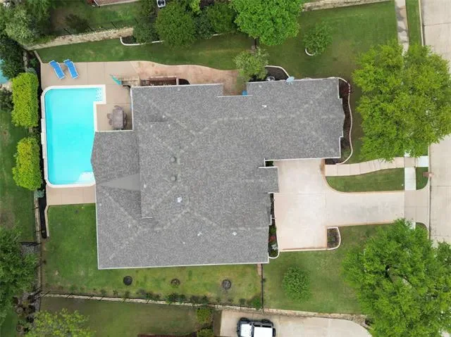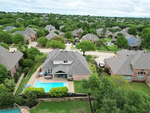 A backyard oasis, flexible living spaces, and a prime Flower Mound location come together in this beautifully maintained 4 bedroom, 3 bath home in the highly sought after Wichita Chase neighborhood. Inside you’ll find a thoughtfully designed open floorplan with a spacious main living area and a separate den that works perfectly as a second living space, reading room, or quiet retreat. A private office and formal dining room add both function and flexibility, making it a home ideal for everyday living and entertaining. The main living space flows seamlessly into the kitchen, creating an open concept layout filled with natural light and designed for connection. Most of the home features durable wood look tile flooring, offering a clean, modern feel with easy maintenance, while two of the bedrooms provide added comfort with carpet. Upstairs, you have a bonus room with a full bath providing the perfect space for a 4th bedroom, media room, versatile game room or private retreat. Step through the large sliding glass doors to enjoy time outside in your own backyard oasis, complete with a sparkling pool, expansive recently updated covered patio and a built in outdoor grill and cooking area. This yard is perfect for entertaining and enjoying time with family and friends year round. The oversized garage with a newly epoxied floor gives you space for your vehicles and storage. Ideally located near Lake Grapevine and miles of scenic walking and biking trails, this home offers the perfect balance of outdoor lifestyle and everyday convenience. With close proximity to top rated schools, shopping, dining and DFW airport, it delivers on location, comfort and lifestyle.