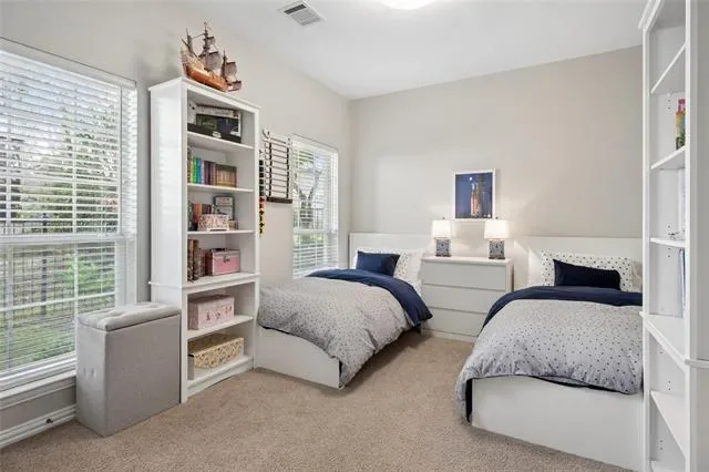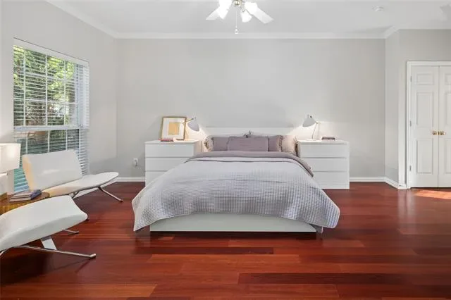 Unwind in the luxurious primary suite, complete with a frameless shower, private access to the backyard, and dual walk-in closets with custom built-ins.
