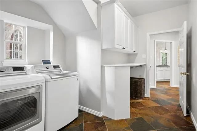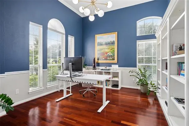 This spacious home sitting on a corner lot is filled with charm and designed for making memories, showcasing soaring ceilings, rich wood and slate flooring, intricate moldings, and elegant arched doorways throughout.