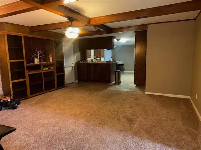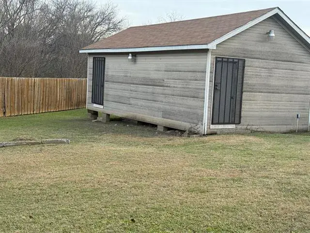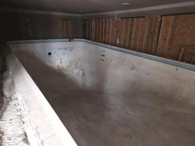 This beautiful home features an extended entryway that leads into a formal dining and living room. A family room connects to a very nice kitchen with plenty of dark wood cabinets. The lovely master bedroom has a large private bathroom with a gorgeous shower that still needs completion. The large walk in closet is amazing. Two additional bedrooms and a large guest bathroom finish out the living quarters for this home. The many attributes to this home include a large feature room with an in-ground pool that will require repairs. There is a laundry room which leads to an oversized lot with a new fence and storage building. Property sold AS-IS.