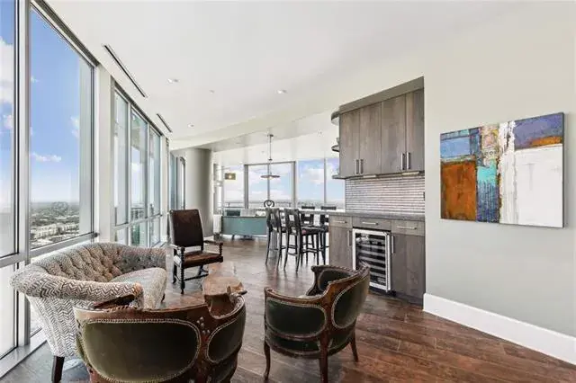 Welcome to luxury living at the exclusive Omni Residences, perched high on the 25th or with panoramic views from every room. The expansive 4,200 square foot condo boasts high-end finishes, inviting balconies and an open floor plan designed for both elegance and comfort. The wood-look, plank tile flows seamlessly throughout the condo and the balconies. Experience breathtaking 270 plus degree views with visibility all the way East to downtown Dallas and West to Parker County from the 25th-floor of the Omni Residences. The custom-built layout includes living quarters on each side of the central space, boasting a designer kitchen, multiple living areas, entertaining spaces, a library, master suite with ensuite bath featuring a Clearlight Wellness dry sauna, and guest quarters. Two expansive balconies spanning 598 SF; unit 2503 offers a luxurious living experience. Additionally, it is equipped with extensive updates for the most discerning buyer like Caesar stone counters, Miele, Thermador, Viking, and Asko appliances plus a 108-bottle wine rack. Enjoy the convenience of the incredible location, 24-hour concierge services, full-service hotel amenities, in home dining and spa, all within walking distance of the Fort Worth entertainment district. An exclusive perk offered to owners is a house account and discounts at all Omni Hotel dining, stays, restaurants, and services. Residence 2503 also includes three garage parking spaces on desirable Pl, all located in a controlled access to an underground parking garage plus four combined storage units. Truly a one-of-a-kind, stunning home. PLEASE SEE EXTENSIVE LIST OF UPDATES AND FOLLOW PROVIDED OFFER INSTRUCTIONS. Review all resident services, amenities and discounts found in transaction desk. BUYER TO VERIFY TAXES, MEASUREMENTS, EXEMPTIONS, SCHOOLS AND ORDER OWN RESALE DOCUMENTS.