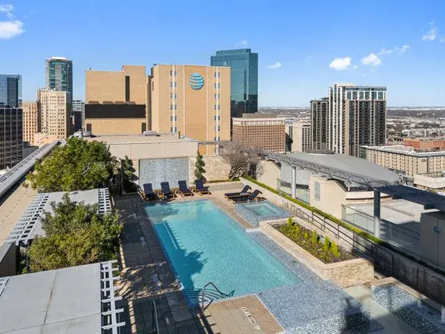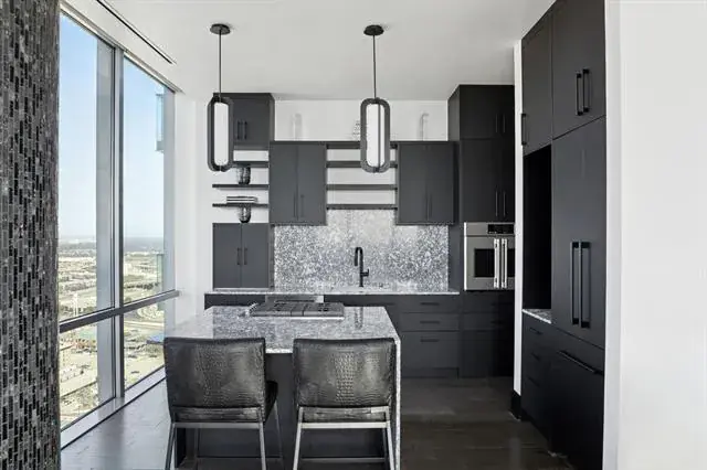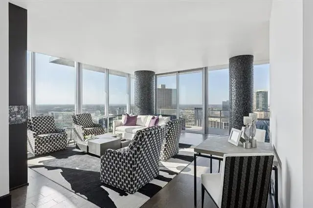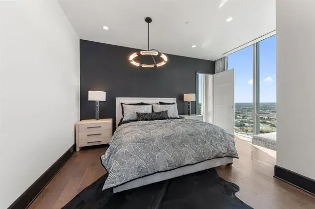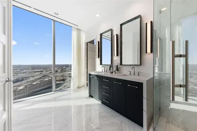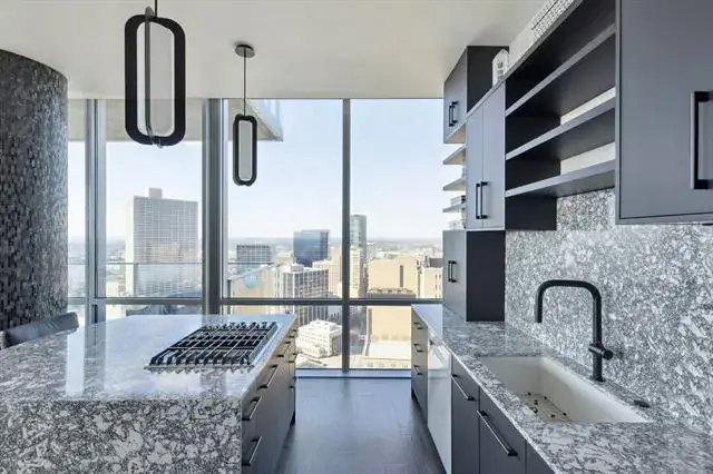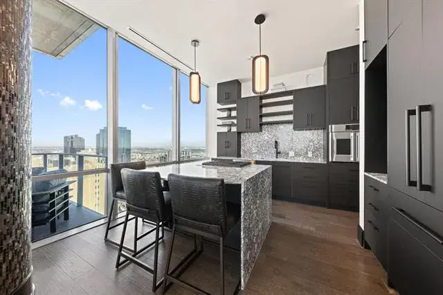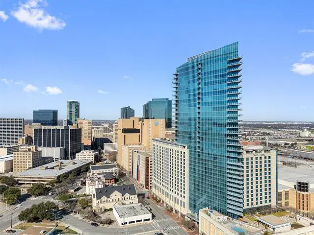Welcome to residence #2601 at the Omni located in the heart of downtown Fort Worth. Fully re-designed in 2025, this turn-key sophisticated 2-bedroom, 2-bathroom high-rise retreat features floor-to-ceiling windows frame sweeping skyline views stretching as far as the eye can see, while a wraparound balcony creates effortless indoor-outdoor living. Inside, an open-concept layout is anchored by a chef’s kitchen with waterfall marble countertops, Monogram and KitchenAid appliances, and a seamless flow into the living and dining spaces. The primary suite is a private sanctuary with a spa-inspired bathroom, dual vanities and walk in shower, while the guest bedroom offers comfort for visitors or could be used as an in home office space. Comes with 2 parking spaces and 1 storage unit for additional storage. Residents enjoy 24-hour concierge service, a resort-style pool, and a state-of-the-art fitness center. All just steps from Fort Worth’s best dining, entertainment, and culture. Private Omni Residents receive additional Omni perks, as well as a Black Level membership with Omni Hotels and Resorts.