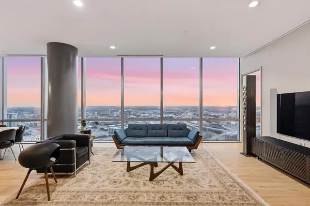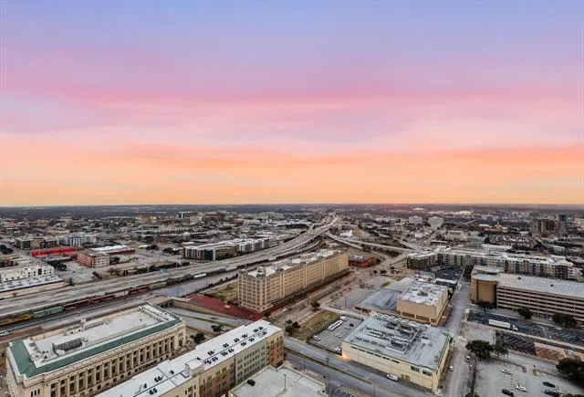 Privacy and elevated luxury await in this 27th-floor residence at The Omni Residences in downtown Fort Worth. Floor-to-ceiling walls of glass frame panoramic skyline views and open to a private balcony overlooking the city. This contemporary home features hardwood floors, formal dining, and an open-concept living and kitchen design ideal for entertaining. The kitchen offers granite countertops, a gas cooktop, built-in stainless-steel refrigerator (less than three years old), stainless appliances, and generous cabinetry. Motorized solar and blackout shades are installed on all windows with remote and smartphone control. The living room and office include remote-controlled dimming switches, and the entry door provides proximity-based keyless access. Fiber-optic internet is hardwired to the router panel. The primary suite includes an expansive walk-in closet and a spa-style bath with dual vanities, soaking tub, and separate glass-enclosed shower. The secondary bedroom features an en-suite bath and functions well as a guest suite, office, or flex space. Residents of The Omni Residences enjoy 24-hour concierge service, secured entry, and gated parking. Unit comes with two designated spaces on Level P1. Ownership includes access to the private residents-only pool, hot tub, grilling areas, cabanas, fitness center, terrace, and Zen garden. Through the Omni Hotel connection, residents receive discounted hotel room reservations, in-condo dining aka room service discounts, preferred access and discounts at Mokara Spa, and hotel pool plus fitness center. The Omni Hotel has six on-site dining options, including Bob’s Steak &' Chop House and a Starbucks Coffee. Located in the historic Hells Half Acre in downtown Fort Worth near dining, entertainment, and cultural venues. Walking distance to the Fort Worth Convention Center, Sundance Square, Bass Hall, New Texas A&'M Campus, and so much more.