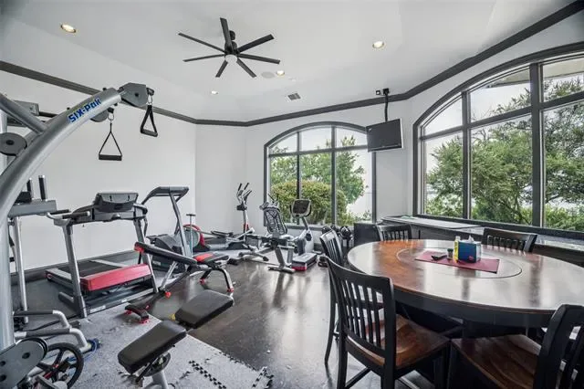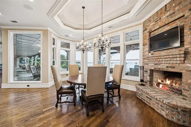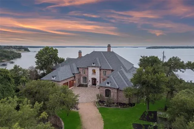 Experience the pinnacle of lakeside luxury in this extraordinary custom home nestled on the shores of Eagle Mountain Lake. Thoughtfully designed for both elegant entertaining &' everyday comfort, this expansive residence boasts 5 bdrms, 6 full baths, 2 half baths &' an unmatched blend of modern amenities. From the moment you step through the grand entrance, panoramic lake views captivate your attention through the family room’s expansive windows. To one side, a formal dining space sets the tone for special occasions, while to the other, the secluded primary suite serves as a private sanctuary. This lavish retreat features a cozy sitting area w-a see-through FP, dual spa-inspired bathrooms, heated floors, a wet bar, 2 large WIC''s + a connected fitness room. A steam shower, safe room &' private laundry area complete the suite’s luxurious amenities. Gourmet kitchen is a culinary masterpiece, fully equipped w-top-of-the-line Viking Apps including a 6-burner gas cooktop, double ovens, full-size BI wine fridge, two dishwashers + a spacious island w-a trough sink &' foot-pedal-controlled faucet. Lighted cabinetry, pantry &' a BI fridge elevate both style &' function. A secondary suite w-its own kitchen + full bath provides ideal accommodations for guests. Upstairs, 3 additional bedrooms accompany a large game rm, media rm + private office—each offering access to balconies overlooking the lake. Step outside &' relax in the infinity-edge pool, cook up a feast in the outdoor kitchen, unwind by the fire pit, or rinse off in the outdoor shower. The covered patio is enhanced w-retractable shades for all-season comfort &' a boat dock trolley offers easy lake access. There’s even a dedicated dog run. Smart home is loaded with high-end features including Control4 automation, foam insulation, water filtration system + abundant storage. Car enthusiasts will appreciate the three 2-car garages—including one located beneath the main garage w-internal access. Enjoy unrivaled lakeside lifestyle.