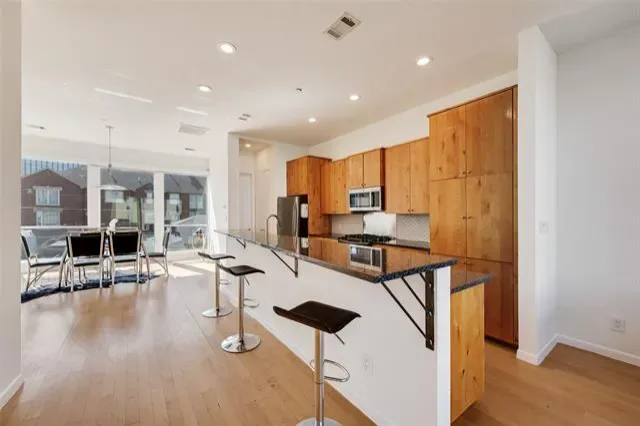 Stylish downtown Fort Worth loft with fresh updates throughout, including new interior paint and lighting. The open-concept main living area features soaring ceilings, oversized windows for abundant natural light.The kitchen connects seamlessly with the living space, offering granite counters, bar seating, stainless steel appliances, and plenty of cabinet storage for a functional yet inviting design.