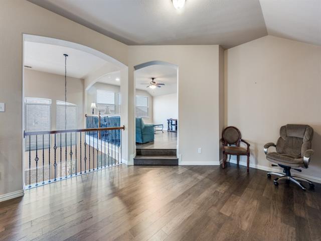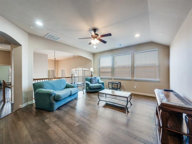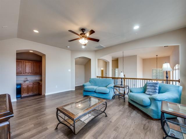 Welcome to this beautifully designed 3-bedroom, 2.5-bath home located in a desirable gated-golf course community on the border of Arlington and Fort Worth. This home enjoys a tranquil lifestyle with a charming lake with waterfall and community golf course. Inside, you’ll find a bright open floorplan filled with tons of natural light and stylish finishes throughout. The spacious downstairs features a large living dining room with a stone gas log fireplace and built-ins. A cozy breakfast bar opens to the spacious kitchen featuring tons of cabinet and prep space. The downstairs primary suite features an ensuite bath, creating a comfortable and private retreat. Upstairs, two additional bedrooms share a full bathroom and are complemented by a large second living area or game room—perfect for entertaining or relaxing. The upper level also includes a versatile bonus space ideal for a home office, study, workout area, or whatever fits your needs. Just off the game room, you’ll find an additional built-in snack or kitchenette area complete with cabinets, counters, and extra storage—perfect for movie nights, guests, or entertaining. One of the guest rooms even enjoys its own private balcony. Additional highlights include no carpet throughout the home, bonus storage space in the garage, and a low-maintenance yard that makes everyday living easy. Enjoy quick access to downtown Fort Worth as well as all the sports, dining, and entertainment Arlington has to offer—making this home an ideal blend of comfort, convenience, and location.