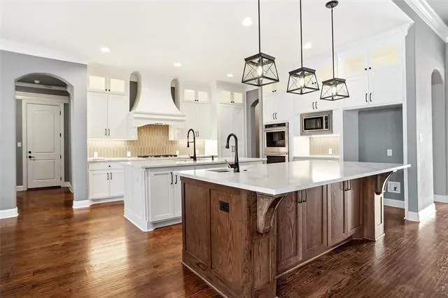 Built-in Features, Built-in Wine Cooler, Cathedral Ceiling(s), Decorative Lighting, Double Vanity, Eat-in Kitchen, Flat Screen Wiring, Granite Counters, High Speed Internet Available, In- Law Suite Floorplan, Kitchen Island, Natural Woodwork, Open Floorplan, Pantry, Smart Home System, Sound System Wiring, Walk- In Closet(s), Wet Bar, Second Primary Bedroom