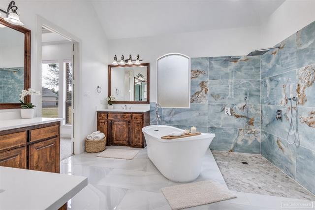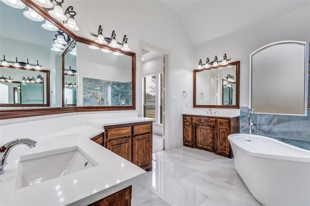 Set on a beautifully improved, fully fenced 1+ acre cul-de-sac lot, this extensively renovated home offers space, privacy, and a rare blend of luxury and functionality. With nearly $400K in recent improvements, almost every system and surface has been thoughtfully updated for long-term value. A flexible floor plan includes four bedrooms, three full baths and powder room, two indoor living areas, private study, large upstairs media room, and true outdoor living space designed for everyday enjoyment. All bedrooms feature walk-in closets, while the privately positioned primary suite offers a spa-style bath with dual shower, slipper tub and custom walk-in closet. Wood-look tile flows through the main living and wet areas, with soft carpeting in the bedrooms and media spaces. At the center of the home, the kitchen features quartz countertops, stainless appliances and an open design connecting seamlessly to the living space. The outdoor pavilion is a standout feature functioning as an extension of the home. Finished with epoxy flooring and open-cell spray foam insulation, the space includes remote-controlled solar screens, oversized ceiling fans, wood-burning fireplace, beer tap and a fully equipped Blaze® outdoor kitchen with striking quartzite waterfall countertops. Beyond the patio, the expansive lot has been carefully improved with professional landscaping, paver accents, an upgraded irrigation system and 70 hollies that provide exceptional privacy screening. Additional highlights include low HOA dues, no city taxes, and highly regarded Azle ISD schools. Conveniently located near Eagle Mountain Lake, Lake Worth, the Fort Worth Nature Center, and the culture and entertainment of downtown Fort Worth—just 11 miles away. Combining acreage, extensive improvements, an exceptional outdoor living experience and a highly functional floor plan, this property offers a rare opportunity to enjoy privacy, comfort, and resort-style living in a peaceful setting close to the city.