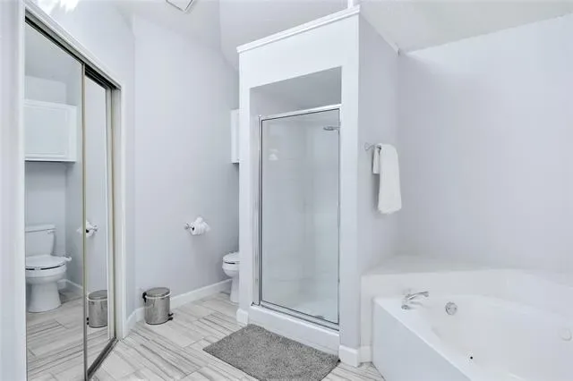 Contemporary touches have turned this residence into a modern sanctuary. The kitchen has been upgraded with stylish cabinetry, granite countertops, stainless steel appliances, a tiled backsplash, and a new sink. The living room and dining area seamlessly connect to the kitchen and side yard, which features a deck shaded for entertaining or for savoring a peaceful cup of coffee while reading a good book. The lower level includes a wood-burning fireplace, two bedrooms, and a full bathroom. The upper level houses the master suite, complete with a separate shower, dual sinks, a jetted tub, and another wood-burning fireplace. The HVAC system was replaced in 2022, with kitchen renovations occurring in 2023 and 2026. The water heater was replaced in 2019. Residents can enjoy a short walk to the community park. Easy access to I30 and 820 for work, dining and entertainment.