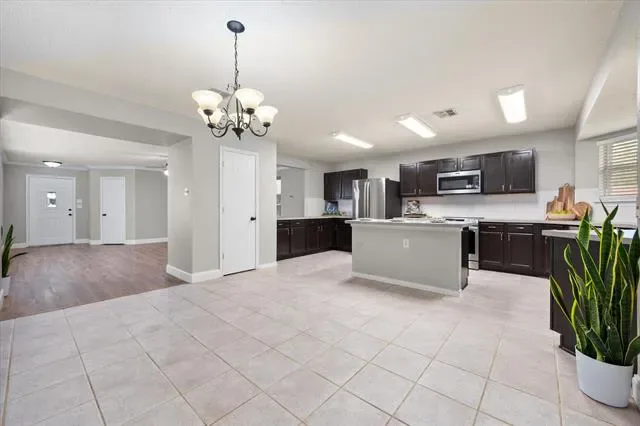 Step inside and be greeted by fresh paint and brand-new flooring in all living areas and bedrooms. The heart of the home is the spacious, open-concept kitchen, featuring generous countertop space, a large island, a new workstation sink, and updated lighting— perfect for entertaining family and friends.