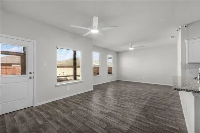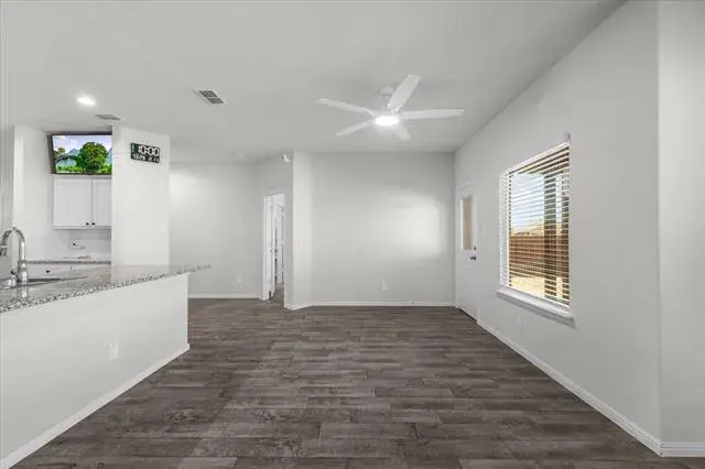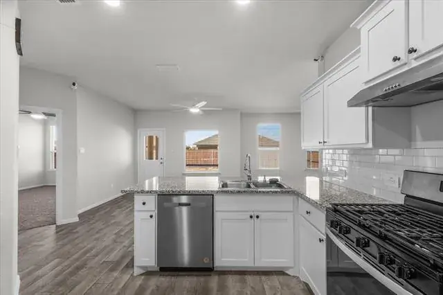 Why wait to build when you can move into practically new? Built in 2023 and meticulously maintained, this 4-bedroom, 2-bath home with a dedicated office offers 1,820 square feet of modern comfort, smart design, and effortless livability. Every system, finish, and feature is only 2½ years old, giving you the peace of mind of newer construction with the advantage of move-in readiness. The open-concept layout was designed for connection. The kitchen anchors the home with granite countertops, crisp white cabinetry, stainless steel appliances, and a gas range — a true standout for those who love to cook. The oversized island flows seamlessly into the dining and family room, making it perfect for hosting gatherings, holidays, or simply enjoying everyday life. Beautiful ceramic wood-look tile flooring adds durability and style throughout the main living areas. The home also features a tankless water heater, providing the convenience of on-demand, endless hot water. Large windows flood the home with natural light, creating a bright and welcoming atmosphere. The private primary suite offers dual sinks, generous storage, a walk-in shower, and a spacious walk-in closet. Three additional bedrooms provide flexibility for guests or family, while the dedicated office creates the ideal work-from-home or study space. One of the most unique features is the enclosed back patio, thoughtfully transformed into a comfortable sunroom — a versatile bonus space perfect for morning coffee, a workout area, playroom, or year-round relaxation. Outside your door, the community offers a vibrant lifestyle complete with a sparkling pool, playground, and scenic walking trails. Located in acclaimed Eagle Mountain ISD and within walking distance to Boswell High School, you’re just minutes from Eagle Mountain Lake, Tarrant County College, shopping, dining, and only 25 minutes from the heart of downtown Fort Worth. Modern. Efficient. Move-in ready. And perfectly located.