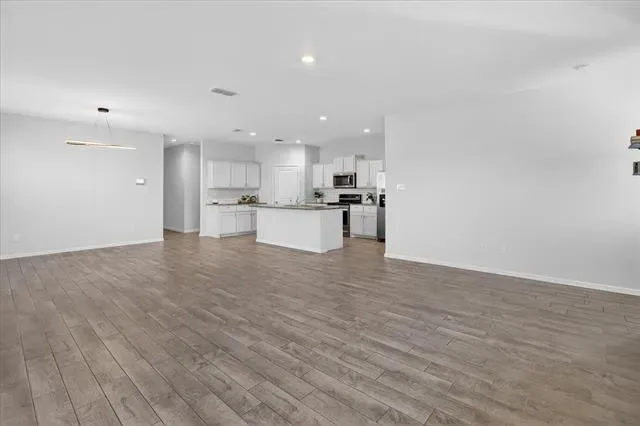 The open-concept layout features a generous living and dining area that flows seamlessly into the chef-inspired kitchen, complete with abundant cabinetry, a large island, granite countertops, stainless steel appliances, a gas range, built-in microwave, and a walk-in pantry. Lots of natural light and space to grow!