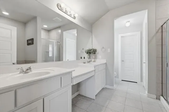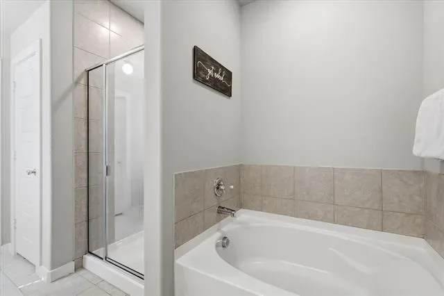 The spacious primary bathroom features double sinks, a relaxing garden tub, a separate shower, and a large walk-in closet. Additional features include a tankless water heater for efficiency and comfort.