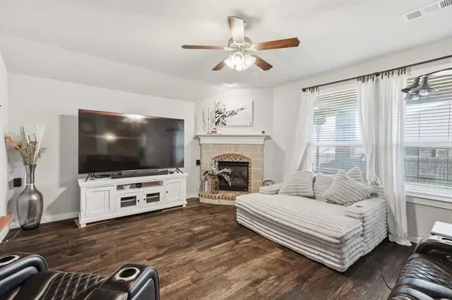 Step into this inviting 3-bedroom, 2-bath home where thoughtful design and modern comfort come together. Wood flooring, stone countertops, and neutral paint colors create a clean, timeless backdrop throughout the main living spaces. A striking stone fireplace anchors the living room, adding warmth and character.