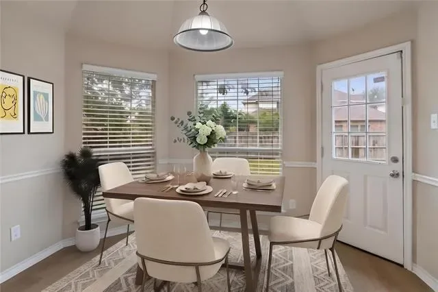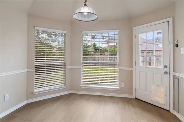 Step inside to an open and airy layout featuring brand new luxury vinyl plank flooring throughout, neutral tones, and abundant natural light throughout. Just off the entry, a versatile flex space provides the perfect option for a home office, second living area, or playroom. The home flows seamlessly into a formal dining area highlighted by elegant wall trim and a statement chandelier—ideal for hosting.