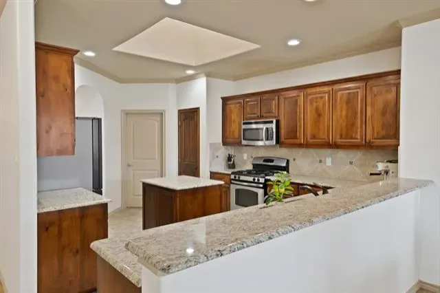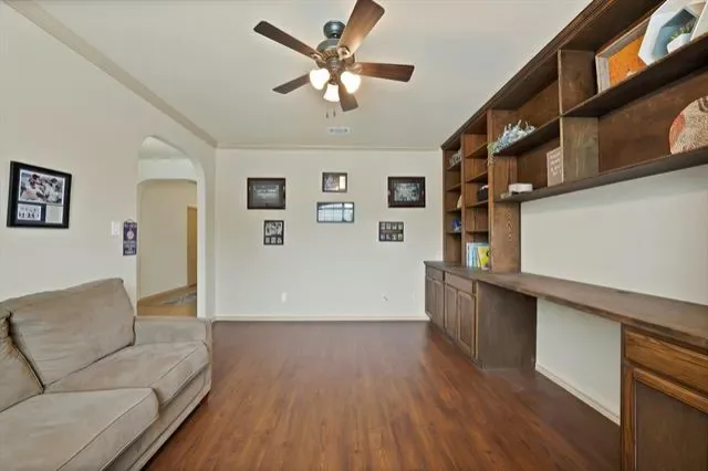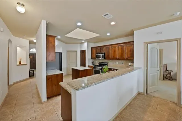 Great location and an easy walk to the elementary and middle school, make this home as convenient as it is inviting! in the desirable Bar C Ranch community, this beautifully maintained residence welcomes you with an open, airy floor plan designed for both everyday comfort and memorable gatherings. At the heart of the home, the kitchen shines with granite countertops, a gas range, and a spacious breakfast bar that seamlessly connects to the cozy nook and living area, perfect for morning coffee or hosting friends and family! The primary suite is a true retreat, offering generous space to unwind, along with a spa-like bath featuring a relaxing garden tub, separate shower, dual vanities, and a large walk-in closet. A thoughtful split floor plan provides privacy, with three bedrooms, two full baths, and a flex-room, with built-ins, that can easily adapt to a second living area, game room, office, and more! Bar C Ranch offers a vibrant community atmosphere with amenities that enhance everyday living! Enjoy sunny days by the pool with cabanas, scenic walking trails, playgrounds, a clubhouse, and the convenience of on-site elementary and middle schools. With quick access to major highways, plus a variety of nearby shopping and dining options, this home combines comfort, connection, and convenience in one exceptional package! Don’t miss your chance to experience the lifestyle you’ve been looking for!