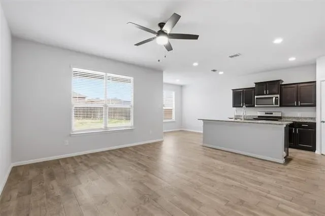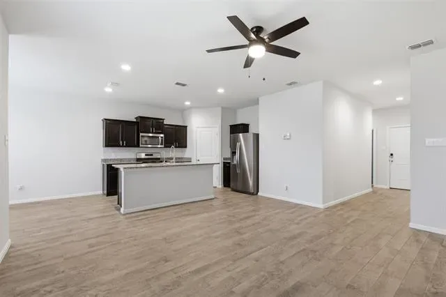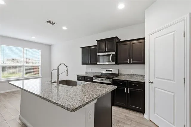 Beautifully maintained single-story home on a corner lot in a prime Fort Worth location near Alliance and Northwest Community Park. This 3-bedroom, 2-bath home offers an open-concept living, dining, and kitchen layout with granite countertops, stainless steel appliances, gas range, island, walk-in pantry, and a new stainless steel farmhouse sink. The spacious primary suite features a dual-sink vanity, walk-in shower, and large walk-in closet. Upgrades include gutters around the entire home, French drain, reverse osmosis water filter, water softener, cabinet hardware, ceiling fans in all bedrooms, smart home features, and Ethernet wiring. Additional highlights include window blinds, full-size utility room, and gas tankless water heater. Community amenities include a pool, cabana, playground, and tot lot, with direct access to Northwest Community Park offering a lake, waterfalls, trails, and dog parks. Minutes from shopping, dining, and the Fort Worth Nature Reserve. Washer, dryer, and refrigerator to convey with an acceptable offer!