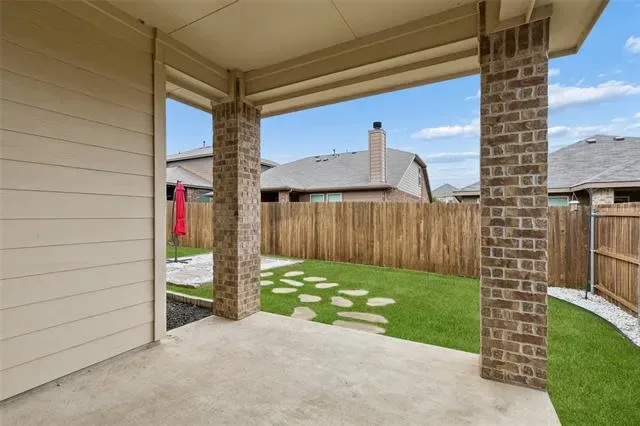 Covered Patio/Porch, Rain Gutters, Lighting, Private Yard