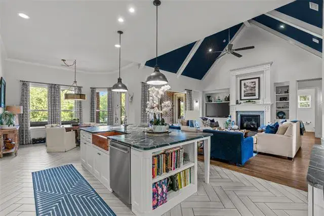 Built-in Features, Chandelier, Decorative Lighting, Kitchen Island, Open Floorplan, Pantry, Vaulted Ceiling(s), Walk- In Closet(s)