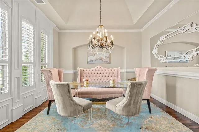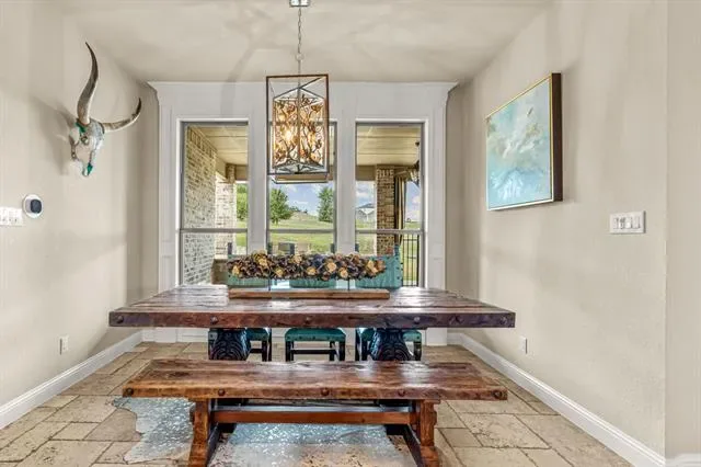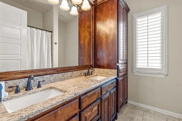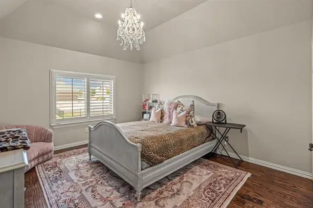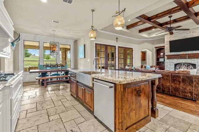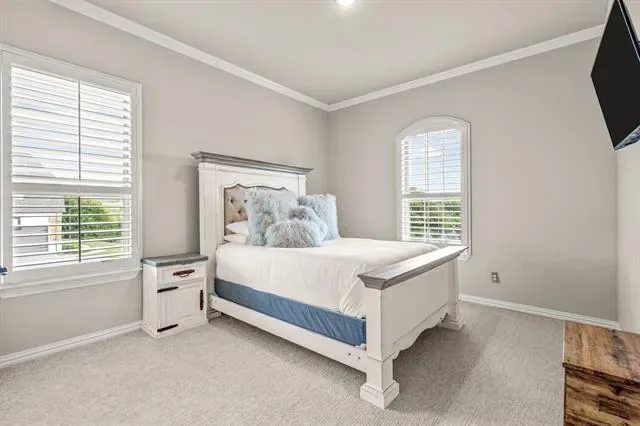 Nestled on over an acre in the prestigious guarded and gated Bella Flora community, this immaculate home offers a perfect blend of luxury, comfort, and functionality. Step into a light-filled, open interior featuring stunning hardwood floors, elegant lighting, and plantation shutters throughout and NEW carpet in the bedrooms, and fresh paint on walls and fresh stain on cabinets. The thoughtfully designed layout includes both formal and casual dining areas, as well as a versatile second living space or office just off the entry. The spacious living room boasts a stone fireplace, built-in shelving, and a beamed ceiling, with two sets of French doors leading to an expansive outdoor living area—complete with a fireplace, built-in grill, and cooking station, ideal for entertaining. The chef’s kitchen is designed for both style and function, featuring a large center island with seating, a gas cooktop, double ovens, and a walk-in pantry. The first-floor primary suite is a private retreat with a custom walk-in closet, walk-through double shower, separate soaking tub, and dual vanities. Also on the main level, you''ll find a guest bedroom with a full bath, a media room, a half bath, and a spacious utility room. Upstairs, a private fourth bedroom and full bath provide additional comfort for guests or family. The expansive backyard offers endless possibilities, while the three-car garage and extended driveway provide ample parking. Located in the highly sought-after Aledo ISD, this exceptional home combines elegance and practicality in a serene, gated setting. Additional updates: French drain installed.