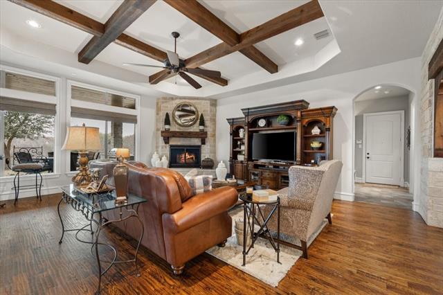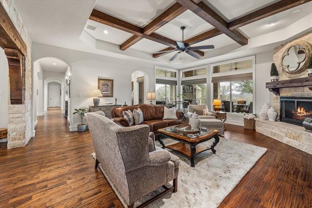 Bella Flora luxury with rare 1,000 sq ft climate-controlled shop! Exceptional John Askew custom home privately positioned within the guarded gates of Bella Flora &' served by highly acclaimed Aledo ISD. Set on a private lot, this impressive 5,390 sq ft residence offers 4 bedrooms, 4.5 baths &' beautifully designed living spaces that balance everyday comfort with elegant entertaining.