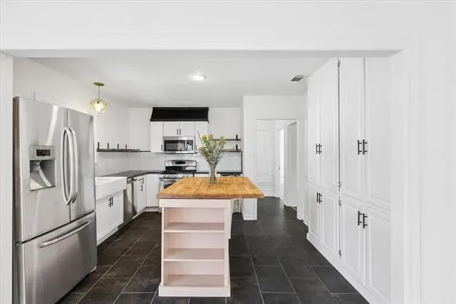 Both bathrooms were fully remodeled in 2021, and the primary suite features an oversized walk in shower with river rock flooring and updated title, and a spacious walk in closet. Home has been updated for a fresh, cohesive look. Total square footage includes guest house. 1776 for main house and 528 for guest house, per TAD.