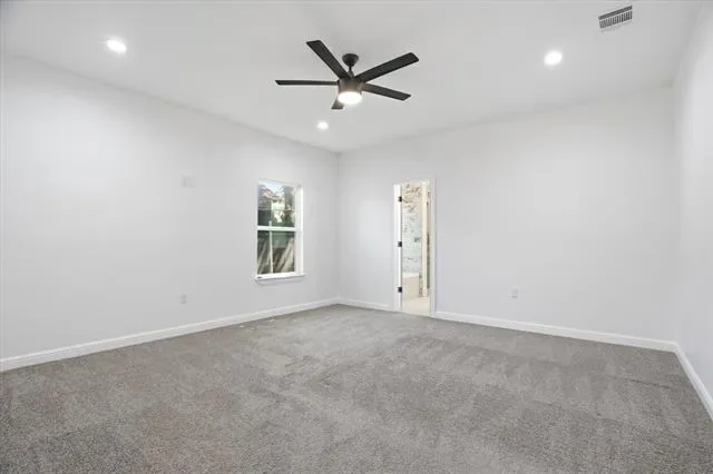 The private primary suite offers a relaxing retreat with a large walk-in closet and a well-appointed ensuite bath. A split-bedroom layout provides added privacy and flexibility for family or guests.