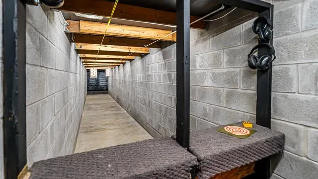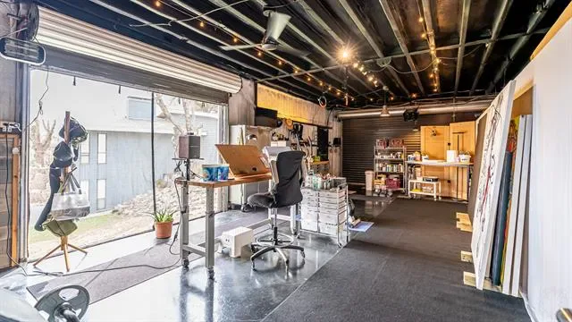A standout second building includes an indoor gun range, a flexible studio or workshop space with multiple 12-foot roll-up doors, and a full apartment above it complete with a kitchen, living area, bedroom, and bathroom.