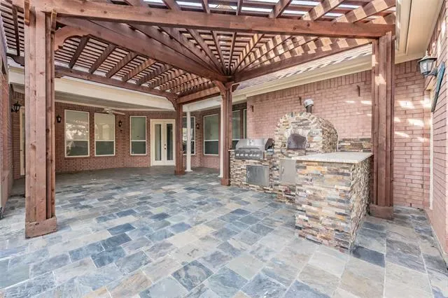 This property is a must see. Property located on a corner lot. It is in good condition, recent updates and ready for the next owner. Backyard has great features such as a built in pizza oven with granite countertop, BBQ Grill and Cedar Pergola. Pool features not only a diving board plus Slide, sitting ledges on both sides and water features. Property has huge rooms with lots of windows that bring in natural light. Media room can also be used as playroom or extra living room. The master has door to balcony overlooking the pool and landscaped backyard. Large den has its own door to patio. Buyer and Buyers agent to verify all information.