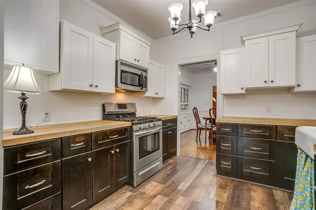The kitchen has been recently renovated and pairs well with the home’s character, featuring a gas range and a period-style sink. Bathrooms have been refreshed with a clean, simple approach, and key updates include HVAC (2020) and water heater (2021).