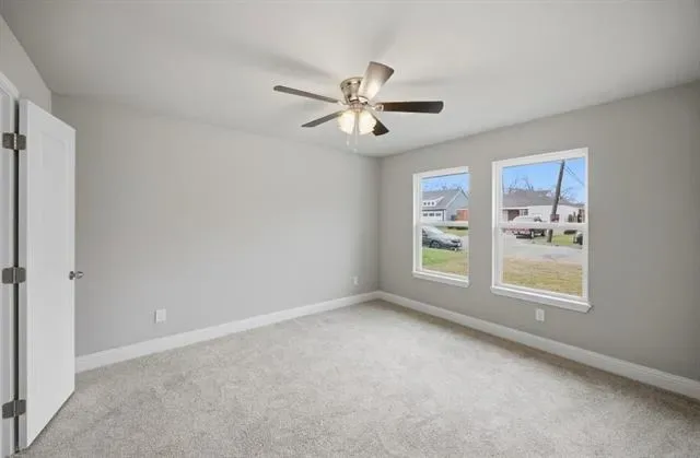 It comes with stainless steel stove, refrigerator and dishwasher. The open concept kitchen has a large pantry also a covered back porch.