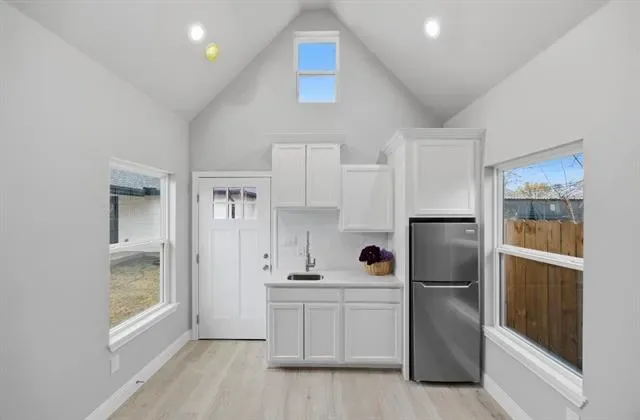 Another JAK Homes creation. This home is convenient to TCU, Berry, University and Granbury Rd. This home has been completely and beautifully renovated from ground up and feature a Mother in Law suite out back. The house has a tandem garage plus driveway parking. The house is open concept and features 4 ensuites. It has 9′ ceilings new roof, plumbing, HVAC, tankless water heater, new flooring through out, new sod and wood fence.