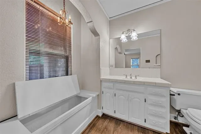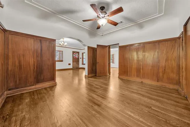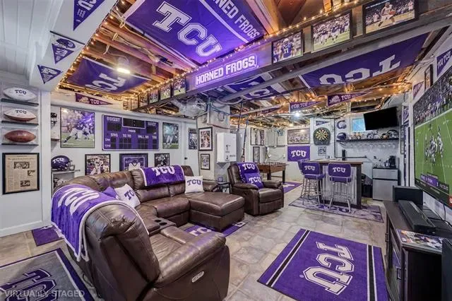Nestled in the heart of the highly sought-after Bluebonnet Hills neighborhood near TCU, this beautifully maintained historical landmark blends timeless character and modern comfort. Step inside and you’re greeted by glowing, refinished original hardwood floors and cohesive design details that create a warm flow throughout . The front living area—with its gas fireplace—opens effortlessly to the wood-paneled dining room, which connects to the kitchen through a classic two-way swinging door.