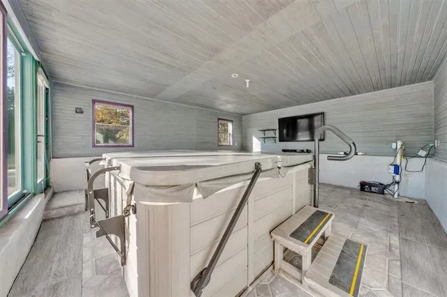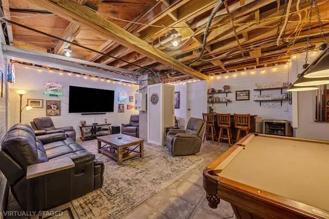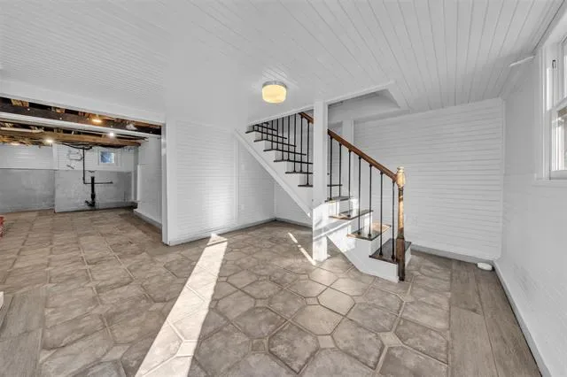This home is ideal for entertaining and relaxation. Aside from the first floor living and dining areas, there is also a large porch outside the kitchen door that leads to an oversized patio downstairs. A finished basement includes two distinct spaces and another full bathroom. One space features a large hot tub and a TV, creating an ultimate space to unwind. The basement is joined to the main floor with an interior staircase and can also be converted into a rental. See pics for more basement ideas. The expansive lot is a standout feature, offering ample room to relax, garden, or play. The backyard showcases an original stone feature, a charming piece of the home’s history that brings unique personality to the space. This feature could be converted back to its original purpose as a pond, or adding a statue or water fountain could make the backyard even more distinctive.