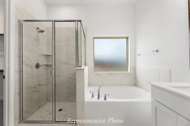 MLS# 21250317 – Built by Sandlin Homes – Nov 2026 completion! ~ Discover this exquisite 5-bedroom, 4-bathroom residence in the desirable Bluffs at Northpointe subdivision, right off Boat Club Road. This traditional-style home boasts 2,563 square feet of thoughtfully designed living space, featuring a spacious open floorplan with bay windows in the primary suite, a secluded bedroom and bathroom upstairs, and an extended covered patio. Additional amenities include a trash can pullout drawer, 3cm quartz countertops, a three-car garage, and tasteful decorative lighting. Located within the highly regarded Eagle MT-Saginaw ISD, this home is just minutes from local schools.