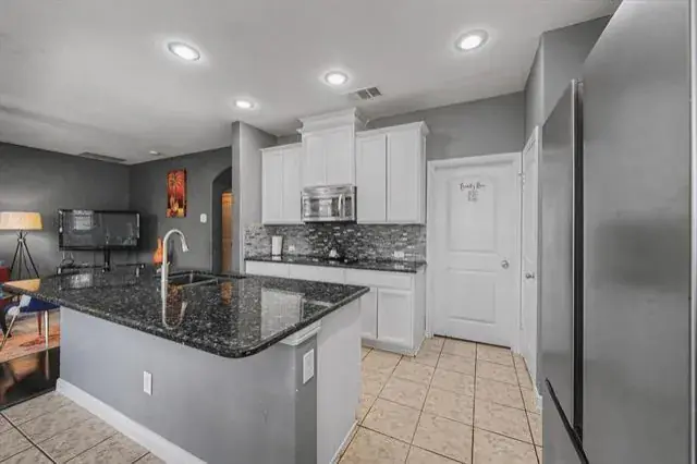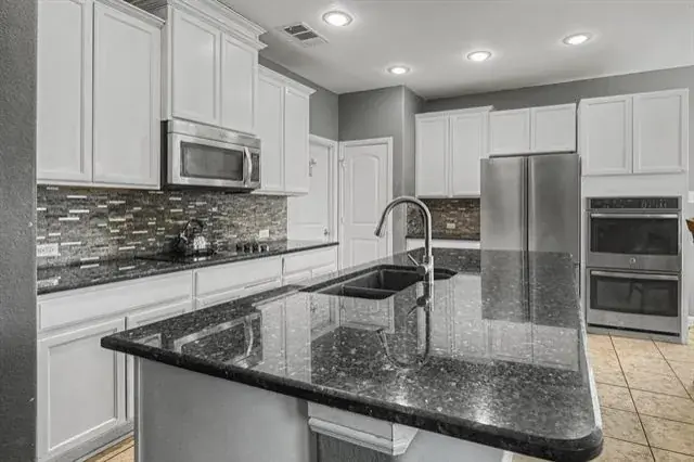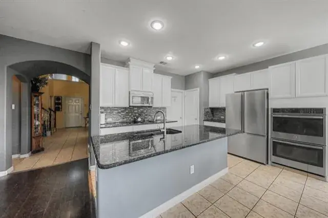 This beautiful 5 bed 2.5 bath with game-room is perfect for the growing family and is conveniently located minutes from Highways I-30, 820, 360 and 35W and minutes from downtown Fort Worth and going the other directions just down the road is Arlington where the Dallas Cowboys and Texas Rangers call home. The 5th bedroom upstairs is perfect for a workout or craft room. This home has many upgrades including a gourmet kitchen that includes stainless steel appliances including double built-in ovens, microwave, large kitchen island with granite countertops, gorgeous backsplash and tons of cabinets. Beautiful covered front porch, wide open hallways, half-bath, office with French doors, oversized primary suite featuring double sinks, large walk-in shower and a huge master closet. The main living and office have bamboo type flooring with updated lighting. Upstairs are the other large secondary bedrooms that all have walk-in closets. Massive game room that fits all the extra toys.