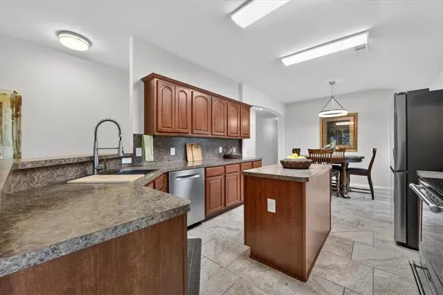 Thoughtfully updated and designed for everyday living, this spacious home offers a flexible floorplan with multiple living and dining areas to fit a variety of lifestyles. The kitchen features abundant cabinet and counter space, a center island, breakfast bar, and opens to the main living area while still offering a sense of separation.