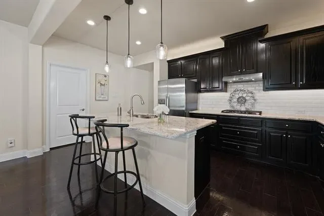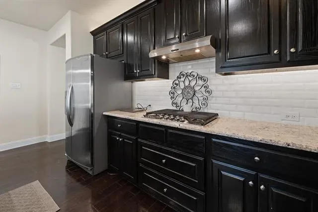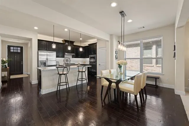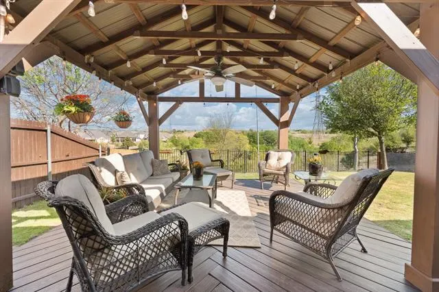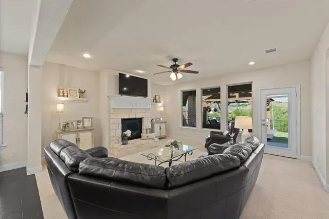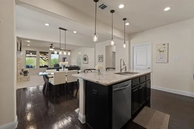 Welcome home to this beautiful 3-bedroom, 2-bath property in the highly sought-after Bluffview Estates, just minutes from downtown Roanoke and located within acclaimed Northwest ISD! This charming home offers the perfect blend of comfort, style, and convenience, with easy access to Roanoke’s Oak Street—known as the Unique Dining Capital of Texas—as well as major freeways and nearby amenities. Inside, rich dark hardwood flooring flows seamlessly through the open floor plan, creating a warm and inviting space ideal for both everyday living and entertaining. A versatile flex room offers endless possibilities, whether you need a second dining area, additional living space, game room, or a home office. The kitchen is designed to impress with granite countertops, a gas cooktop, under-cabinet lighting, and ample space to prep and gather, all while opening to the dining and living areas for effortless hosting. The living room overlooks the backyard and features a cozy gas log fireplace. The spacious primary suite provides a relaxing retreat with an en-suite bath featuring a garden tub, dual sinks, separate shower, and a walk-in closet. Step outside to your own private oasis, where the backyard backs to a tranquil greenbelt, offering peaceful views and the chance to enjoy local wildlife right from your own space. Unwind or entertain under the gazebo with wood decking—perfect for quiet evenings or weekend gatherings. The community is a true gem, featuring scenic walking trails, a family-friendly splash pad, and a welcoming atmosphere for all ages. This home not only delivers a beautifully updated living space but also a lifestyle of comfort and relaxation in a prime location. Don’t miss your opportunity to call this one home!