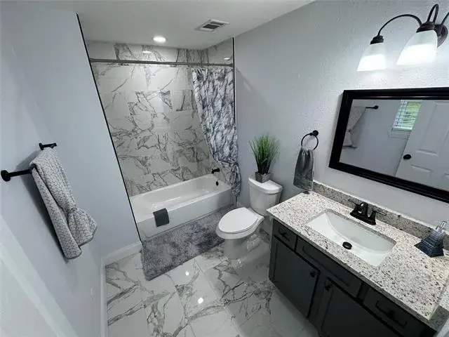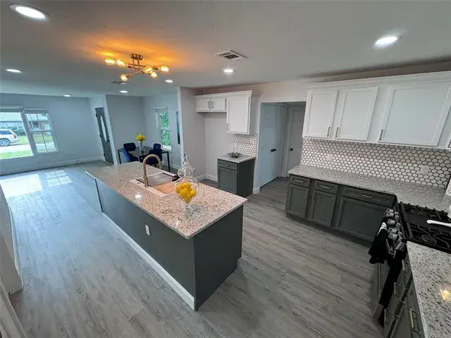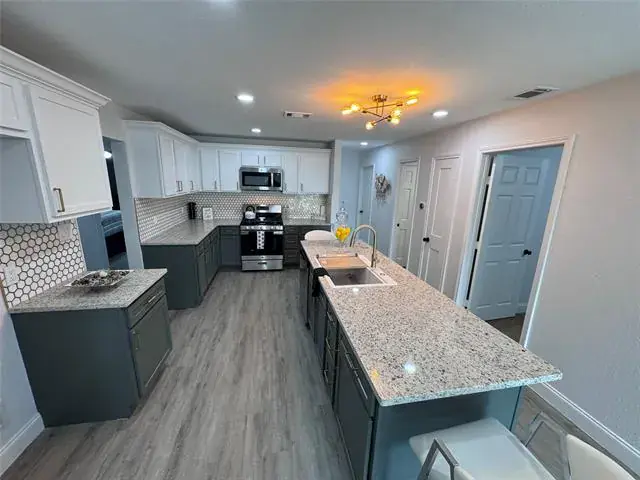 Well Priced With Motivated Seller! This beautifully reimagined 3-bedroom, 2-bath home offers the perfect blend of modern style and smart design. Thoughtfully reconfigured, the layout provides seamless flow and plenty of space for everyday living and entertaining. Featuring two primary suites including a luxurious owner’s retreat with a cozy fireplace — plus a spacious secondary bedroom, this home is ideal for families or multi-generational living. At the heart of the home, the chef’s kitchen impresses with a 9-foot island, farmhouse sink, sleek granite countertops, and stylish finishes — truly a culinary dream. With all-new windows, flooring, granite counters, fixtures, and so much more, every detail has been carefully updated.