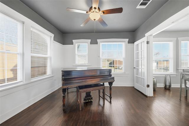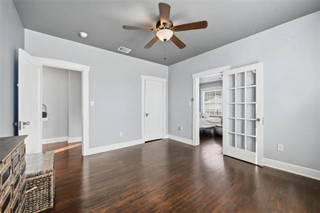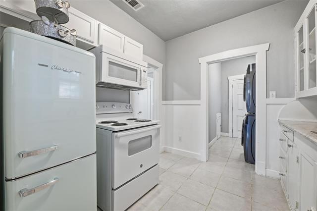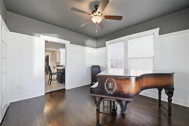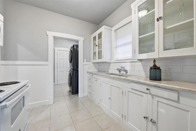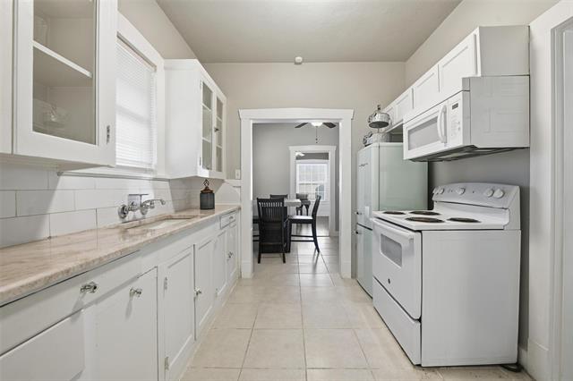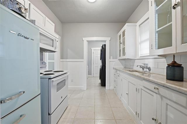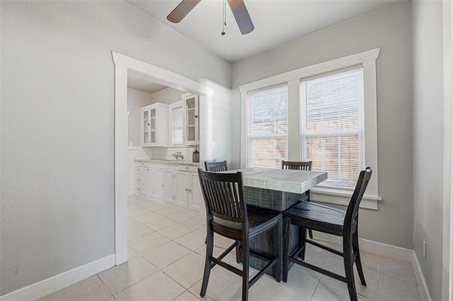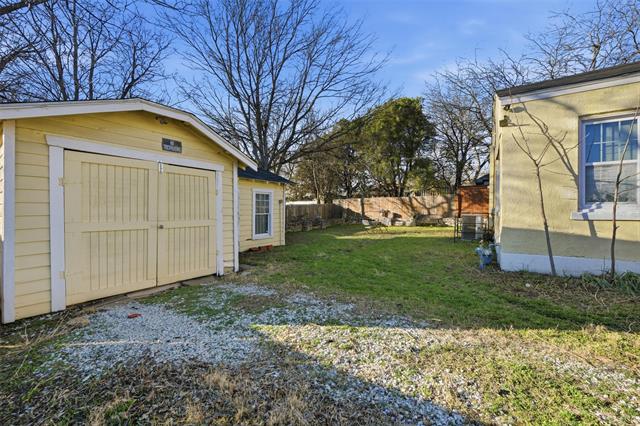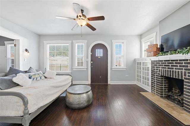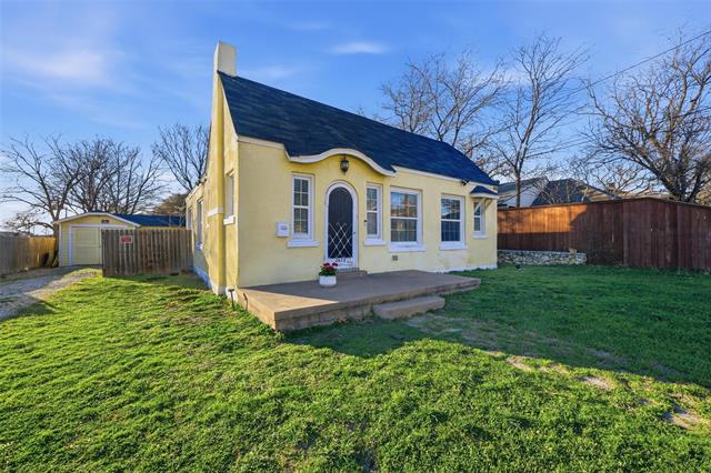 Step into timeless character and craftsmanship in this custom-built 1923 cottage that beautifully blends historic charm with thoughtful updates. From the moment you arrive, the arched entry, classic lines, and inviting front porch set the tone for what awaits inside. Rich, original hardwood floors flow throughout the home, complemented by detailed moldings and period-style doors that showcase the integrity of its era. The spacious living room centers around a striking gas fireplace framed by built-ins, creating a warm and welcoming gathering space. French doors open to a versatile second living area filled with natural light—ideal for a music room, home office, or additional lounge, or for creating a third bedroom space. The kitchen has been tastefully restored with quartz countertops, updated cabinetry, and new appliances while maintaining its vintage appeal. A generously sized dining room provides the perfect setting for entertaining, and a separate utility room adds everyday convenience. Both bedrooms offer comfortable proportions and classic trim work, while the bath reflects the home’s original character with clean, timeless finishes. The plumbing system has been updated. Outdoors, the backyard offers a charming retreat enclosed by a combination of low rock fencing and wood privacy fencing. The detached single-car garage includes an attached workshop with electricity—perfect for projects, storage, or creative space. Ring floodlight security cameras attached to the property will remain for new buyers. Just off I-30, this home is centrally located, close to downtown, Bass Hall, Dickies Arena, and the Stockyards. Ride your bicycle to Trinity Trails, or take a short drive to the Arlington entertainment district. This one-of-a-kind cottage delivers architectural detail, functional living space, and enduring style in a home that simply cannot be replicated.
