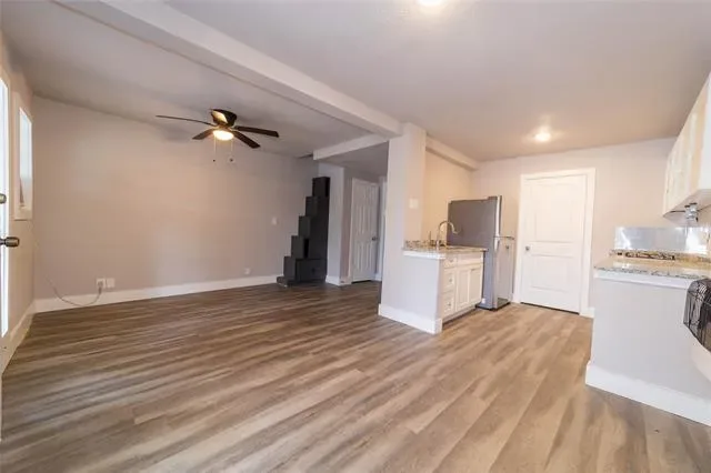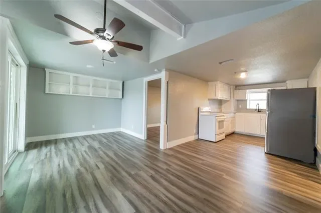 A rare opportunity to own over half an acre across from Lake Worth, this unique property includes two adjacent lots, one with a residence and one vacant, offering endless potential for expansion, investment, or creating your ideal outdoor retreat. The split level home features a spacious second floor balcony with peaceful lake views, perfect for morning coffee or evening gatherings. Inside, the home has been thoughtfully refreshed and offers a warm, inviting feel throughout. The main bedroom serves as a private retreat with its own fireplace and an updated en suite bath. A standout feature is the attached ground floor guest studio with a private entrance, complete with a full kitchen, bathroom, and washer dryer hookups. This flexible space is ideal for a home office, guest suite, gym, or even income producing potential. The fully fenced property includes RV parking with an electrical hookup, adding even more versatility. Both 4838 Williams Spring and the adjacent vacant lot at 4832 Williams Spring are included in the sale, creating a one of a kind opportunity just moments from the lake.