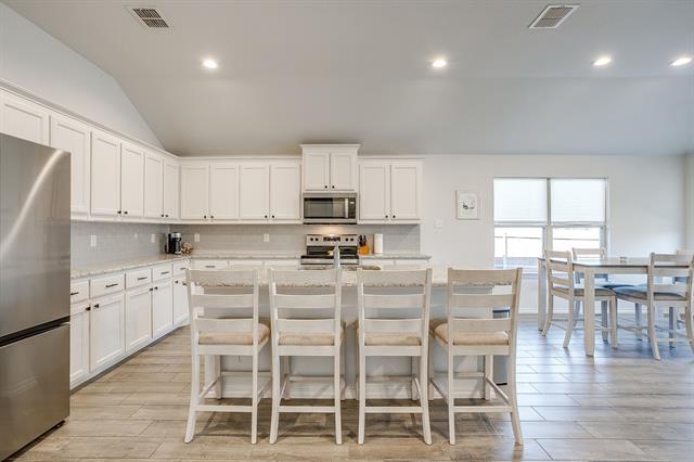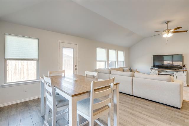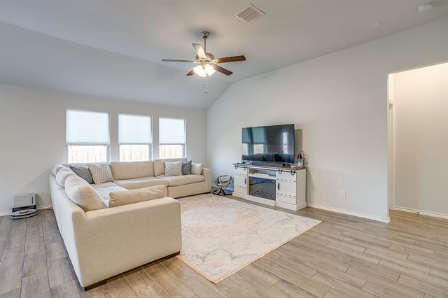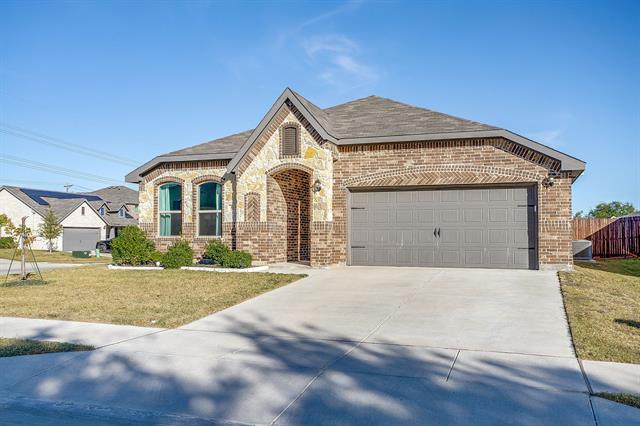 Welcome to this beautifully crafted, nearly new build in the sought-after Brookville Ranch subdivision. This 2022-construction home offers 1,620 sq ft of intelligently designed living space with 3 bedrooms and 2 full baths. Step inside to find an open floor plan where the living, dining and kitchen areas flow seamlessly—ideal for both cozy evenings and entertaining. The kitchen features modern finishes and ample cabinetry. The primary suite offers a private bath and generous closet space, while two additional bedrooms and a second full bath round out the accommodation. Outside, you’ll appreciate the corner lot and manageable yard on a 0.15-acre lot — perfect for outdoor gatherings or relaxing al-fresco. Additional highlights: a two-car garage, and immediate access to shopping, dining and amenities. Located within the Eagle Mt-Saginaw ISD, with easy commutes into Fort Worth and the surrounding metro areas. Assumable VA loan! Washer and Dryer to convey!